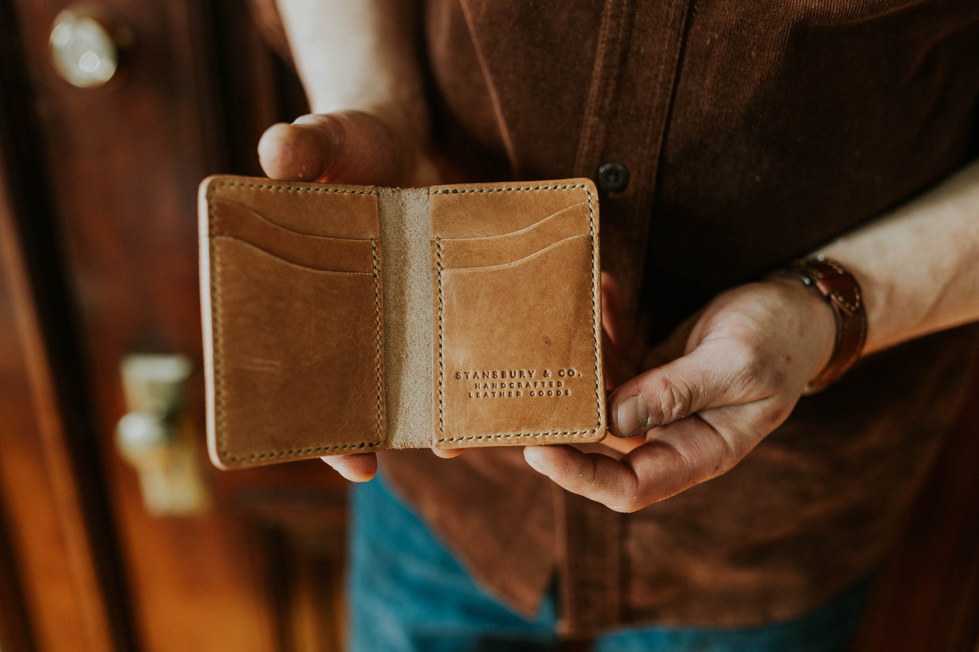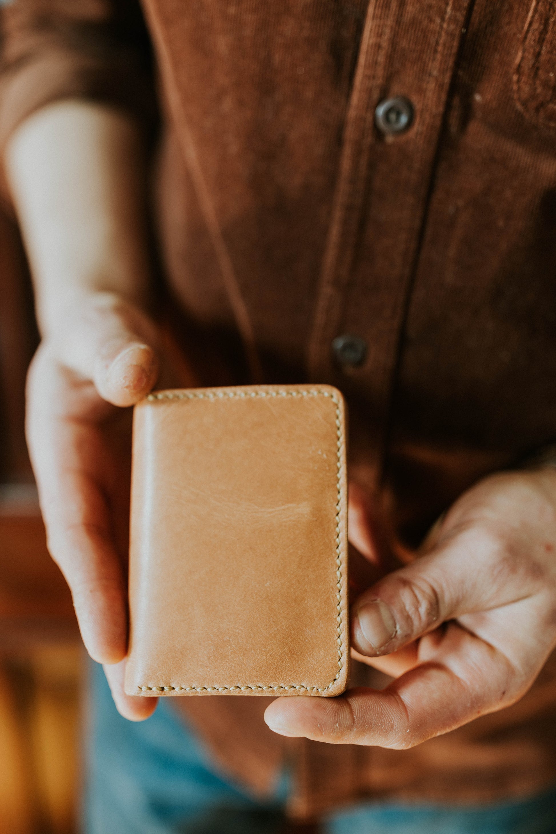 Full Grain, Vegetable Tanned Horween Dublin Leather.