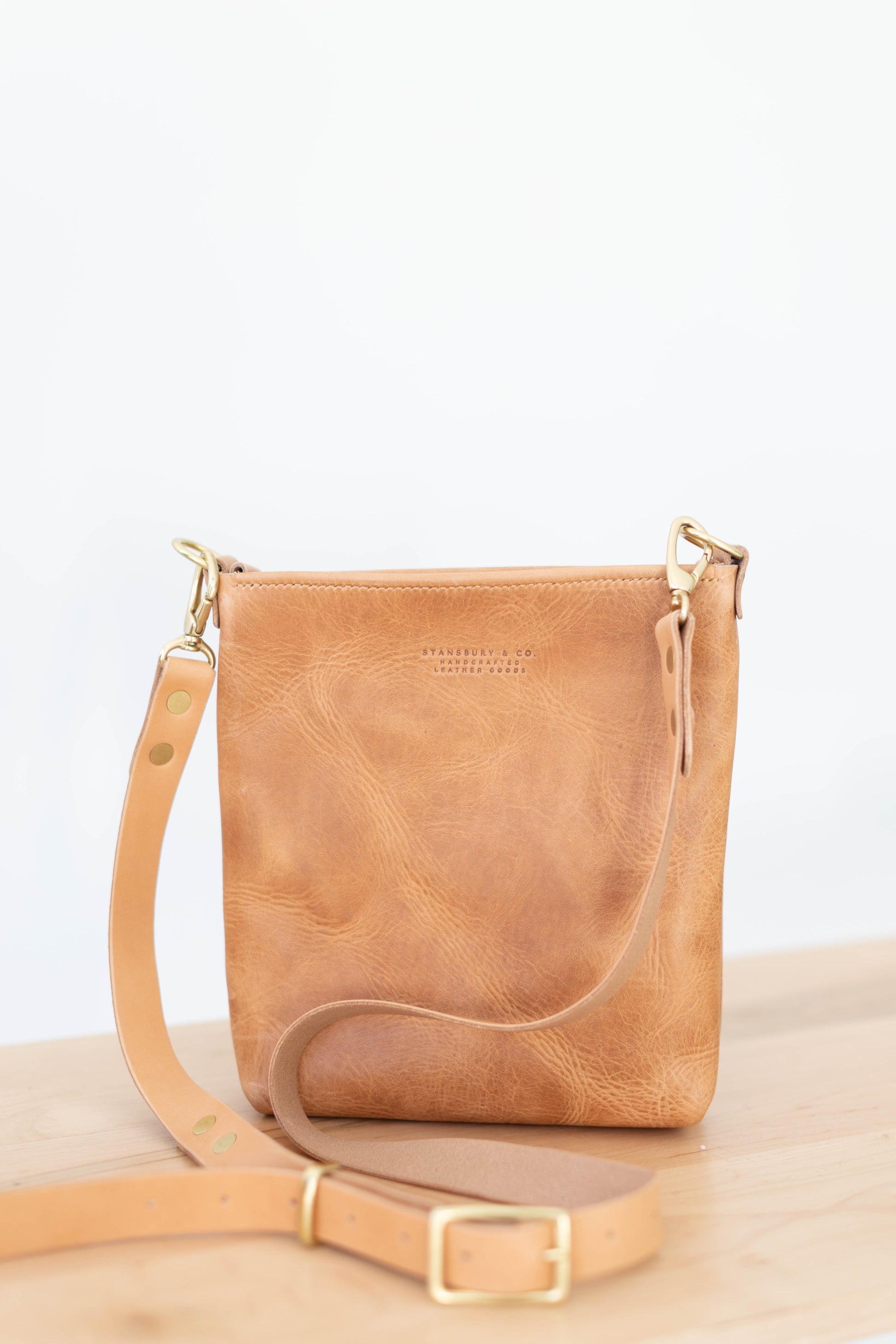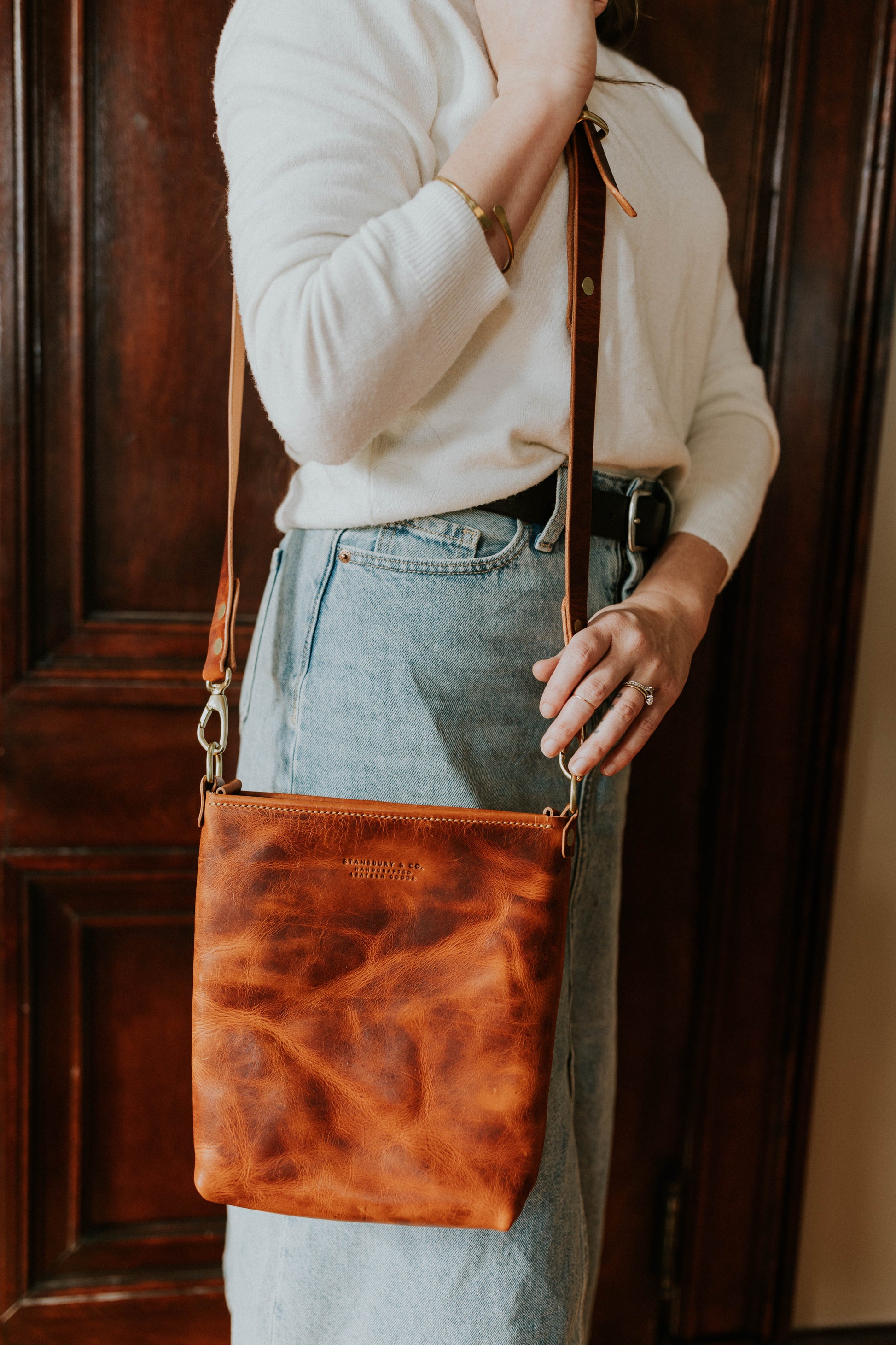 The perfect mid-size purse to get you through the everyday bustle. Large enough to hold the daily essentials and slim enough to not weigh you down when on the go. Solid brass hardware and you can fully adjust the crossbody strap or remove it altogether.