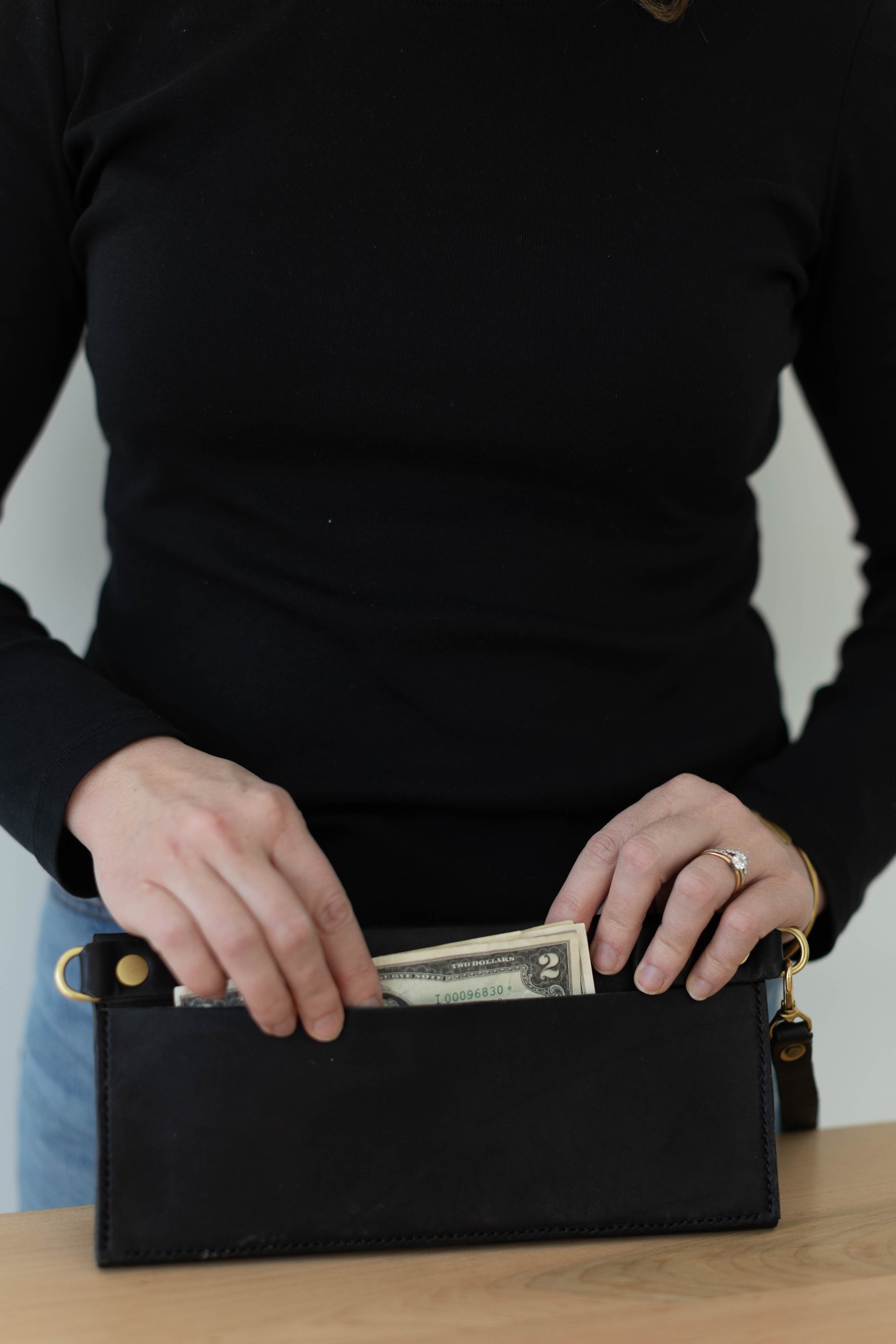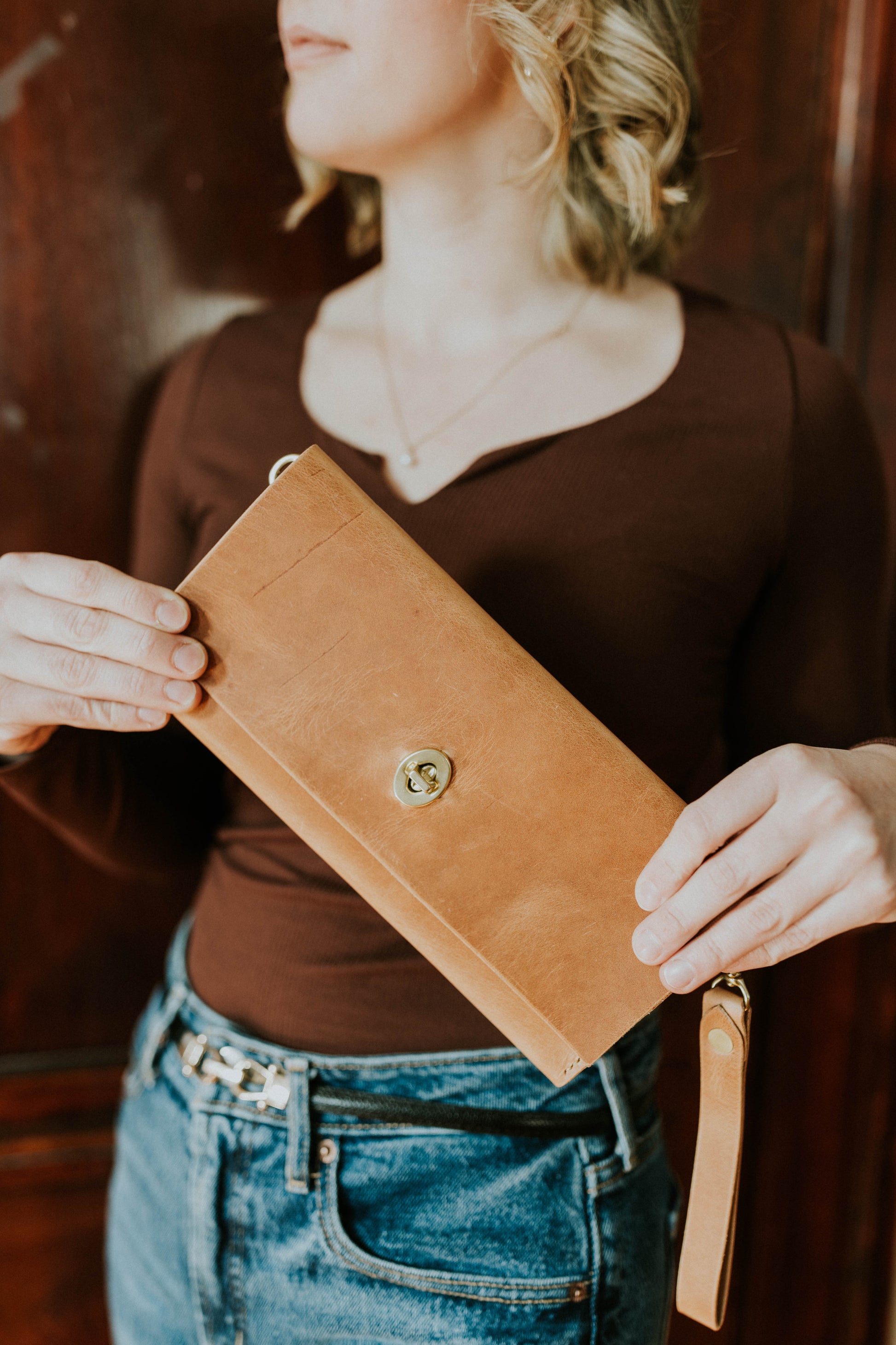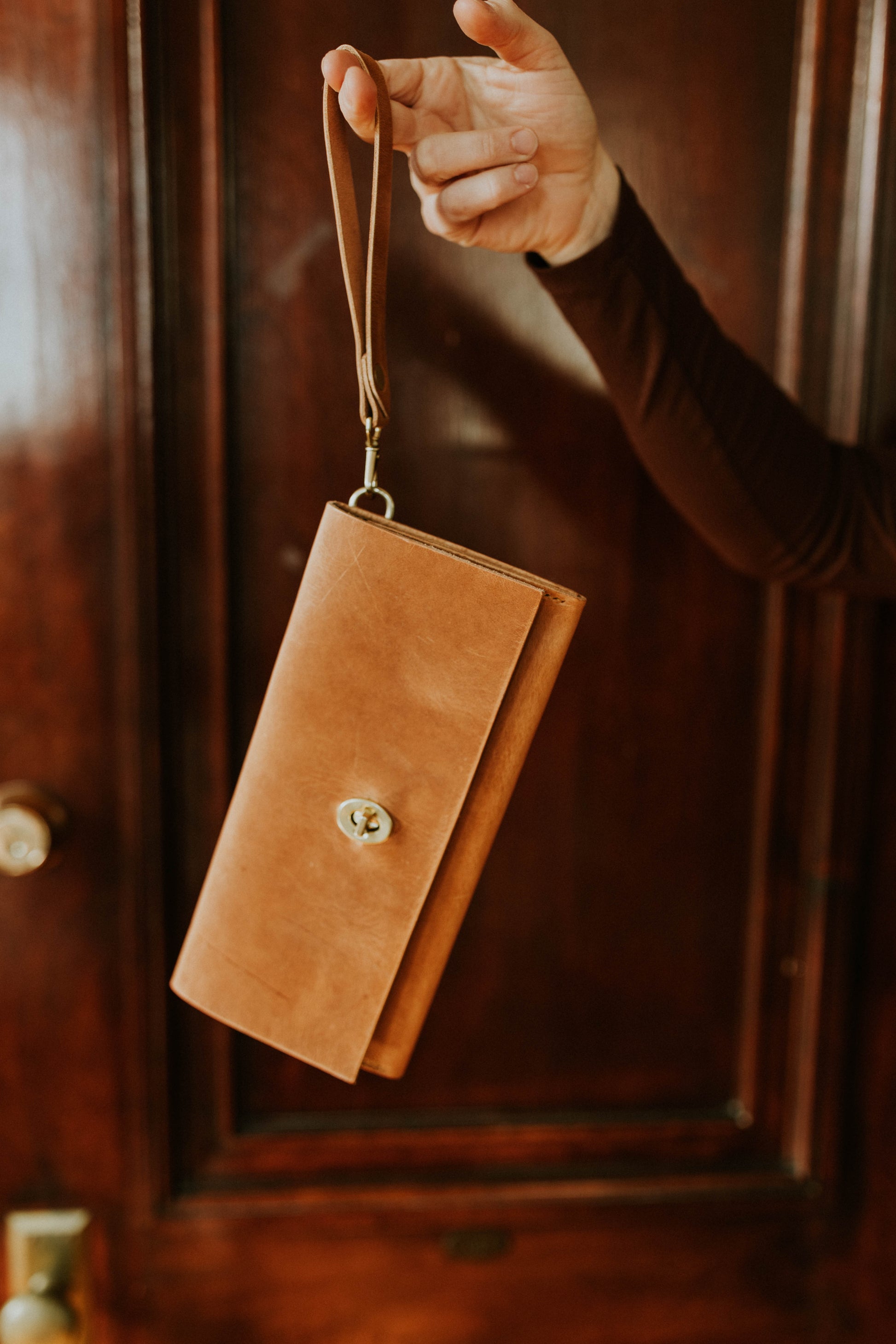 Elegance and sophistication meet durability in our women's clutch wallet. 4 card slots with a roomy interior pocket and a bonus slim back pocket. Solid brass hardware and you can attach the clutch handle on either side or remove it altogether. This timeless piece has all the class and a bit of the sass too.