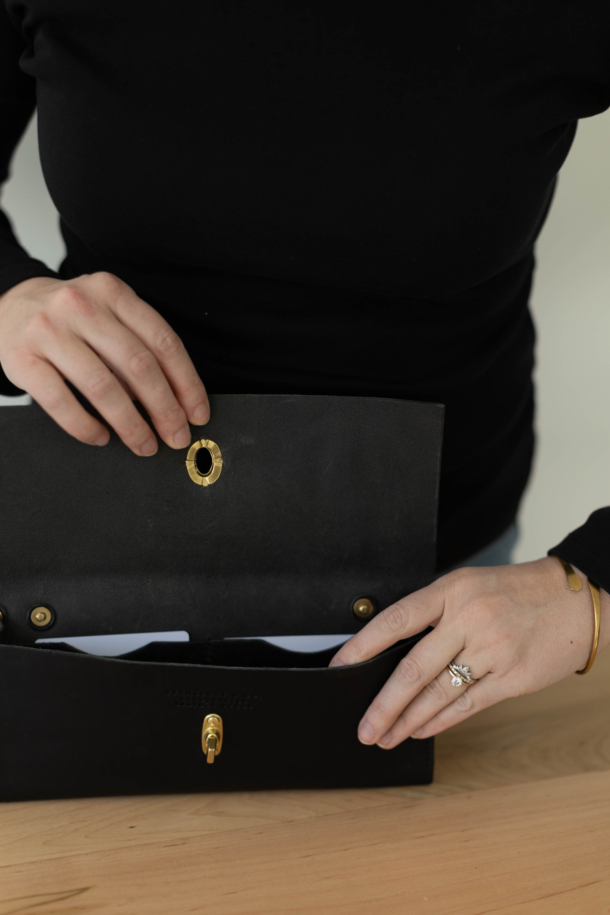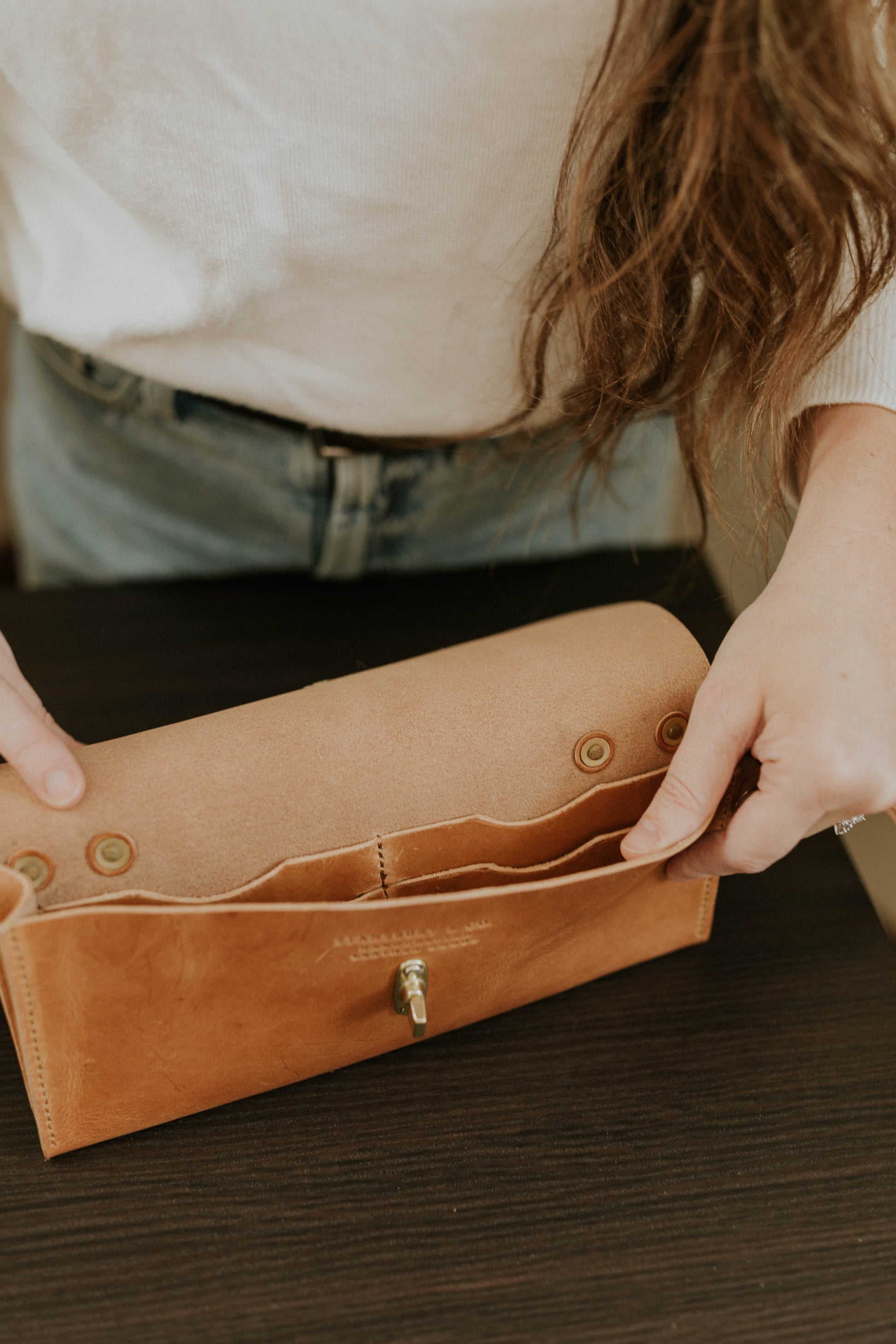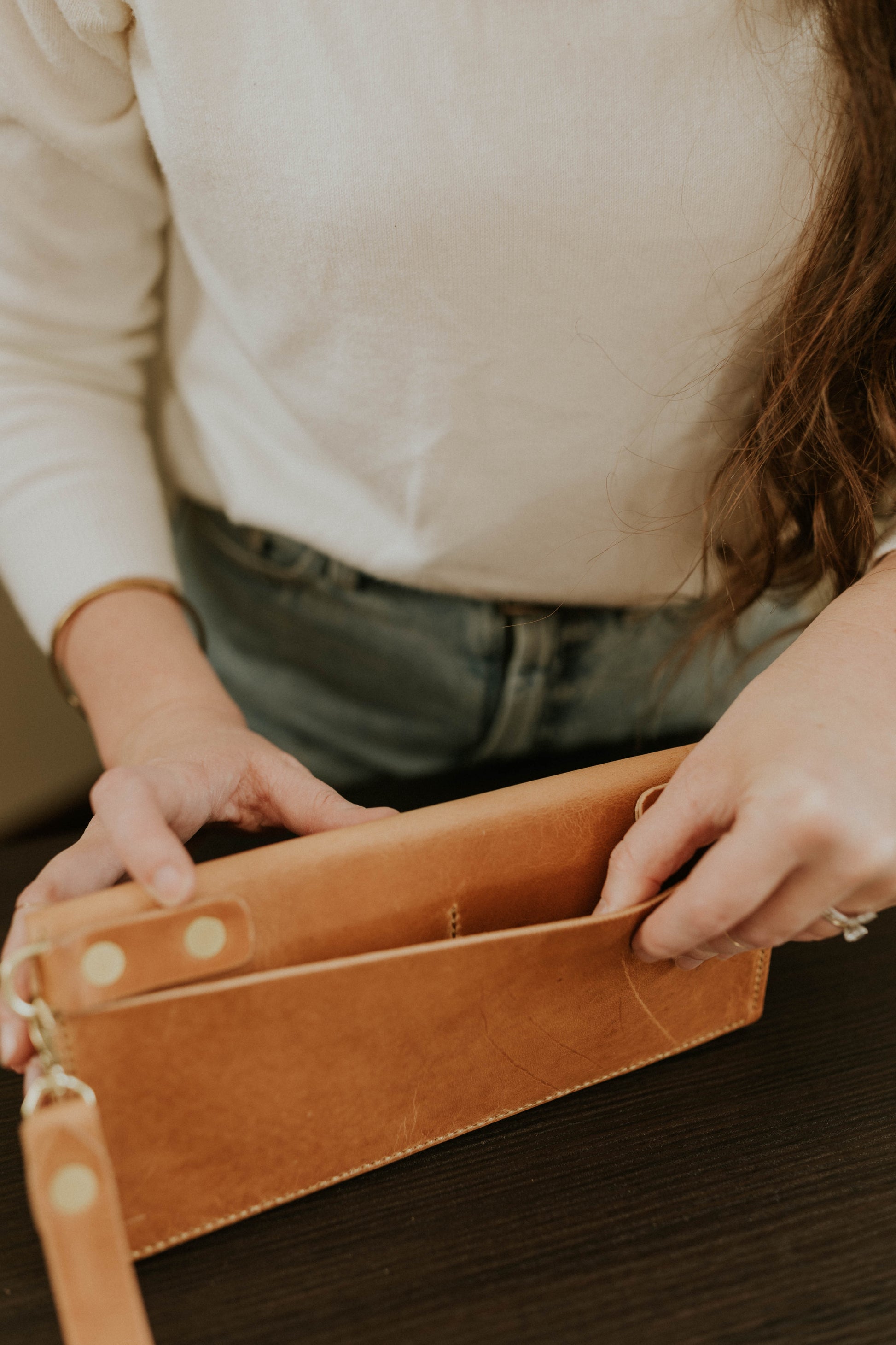 Elegance and sophistication meet durability in our women's clutch wallet. 4 card slots with a roomy interior pocket and a bonus slim back pocket. Solid brass hardware and you can attach the clutch handle on either side or remove it altogether. This timeless piece has all the class and a bit of the sass too.